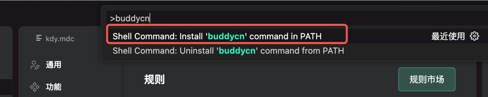 Use Up Arrow ↑ + Command + P to open the installation window, input "buddycn" to install buddycn.