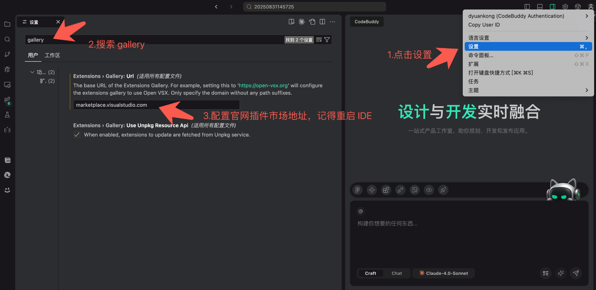 Search for "gallery" in the IDE settings, then configure https://marketplace.visualstudio.com and restart the IDE.
