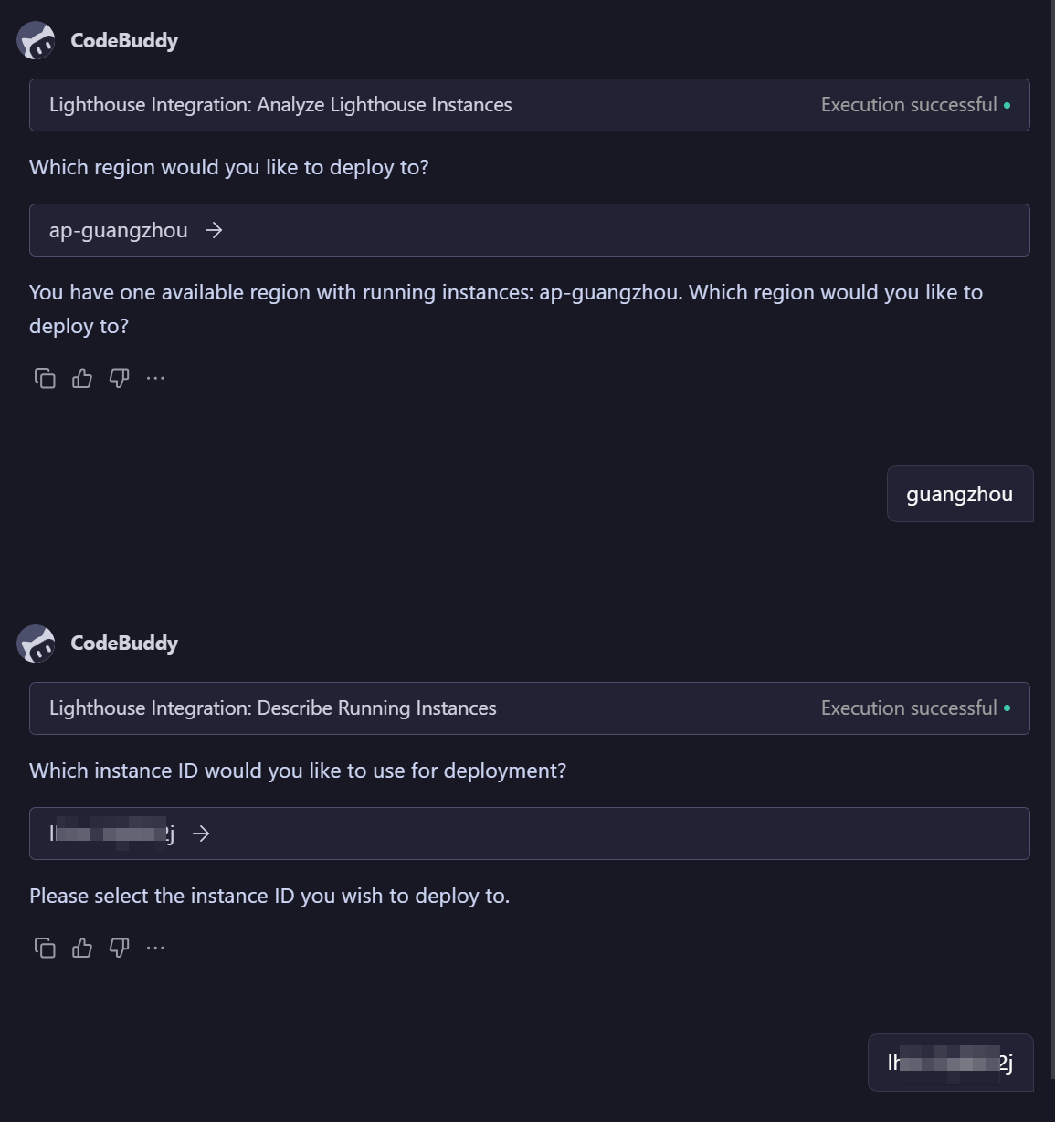 CodeBuddy has preconfigured the Cloud Studio connection environment for you, so no additional setup is required. You can trigger the deployment as follows: