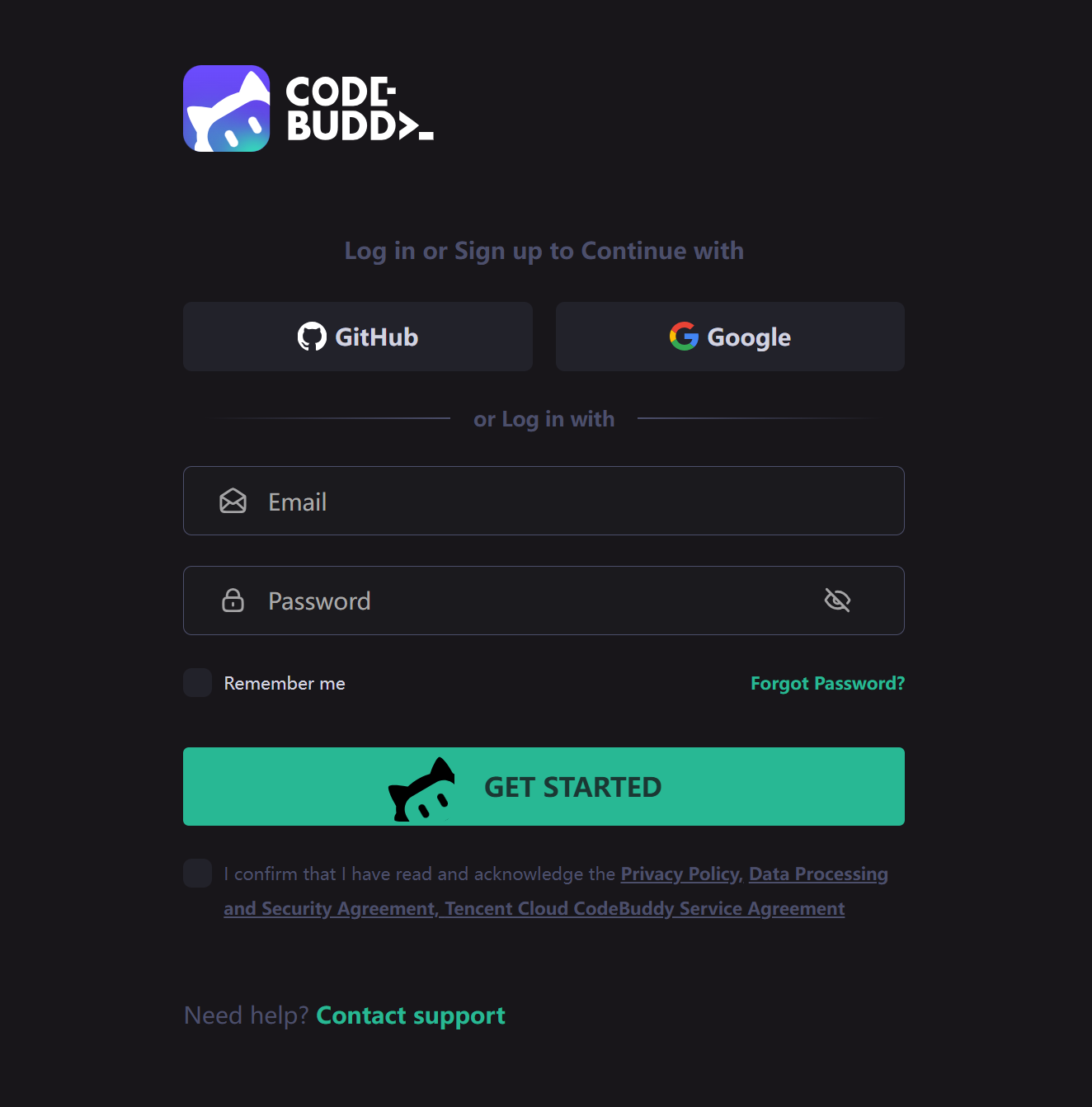 Launch CodeBuddy IDE and click Log in with the account you just created.
